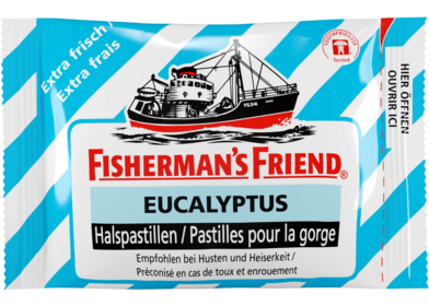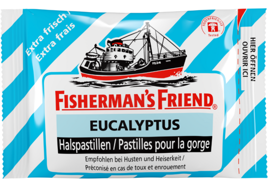Du reisst die Packung auf und weisst: Gleich wird’s ... whoaaaa! Stark im Geschmack, frisch auf der Zunge und eisig beim Einatmen. Tja, das ist eben Fisherman’s Friend Eucalyptus. Probiere es aus – aber zieh dich warm an.