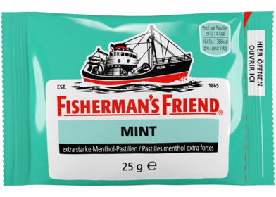Echt. Unverfälscht. Fisherman’s Friend Mint mit Zucker gehört mit zu den ersten Sorten überhaupt und ist sich bis heute in Punkto Geschmack und Frische treu geblieben. Starkes Minzaroma mit hohem Mentholanteil. Ohne Streifen, ohne Chi-chi, ohne Konkurrenz.