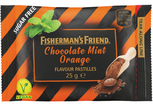 For en kombinasjon! Intens sjokoladesmak fra ekte kakaopulver sammen med forfriskende mynte i den ikoniske pastilleformen til Fisherman's Friend. Vegansk og pakket i en praktisk og lukkbar pose med zip-lock.